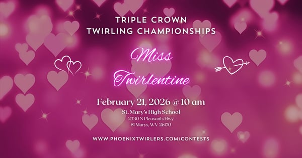 Points earned from each contest will be tallied together at the end of the 3rd contest to name the TRIPLE CROWN TWIRLING CHAMPION in each age division and in teams!